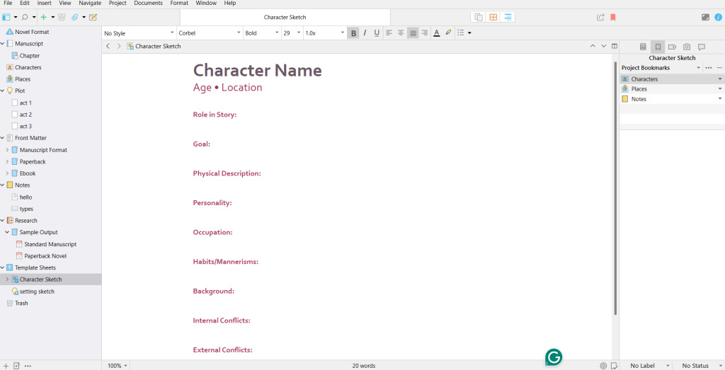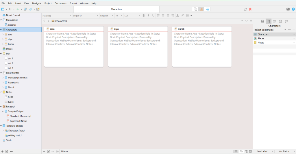Characters are the heartbeat of any book, and Scrivener helps you keep them consistent. You can build detailed character profiles with notes on personality, backstory, motivations, and relationships. Many authors also add images for visual reference, which Scrivener handles seamlessly.